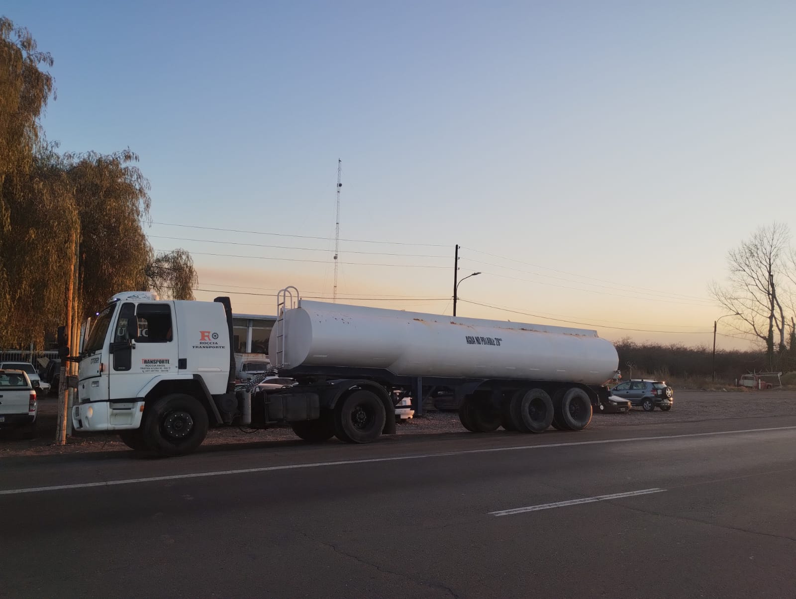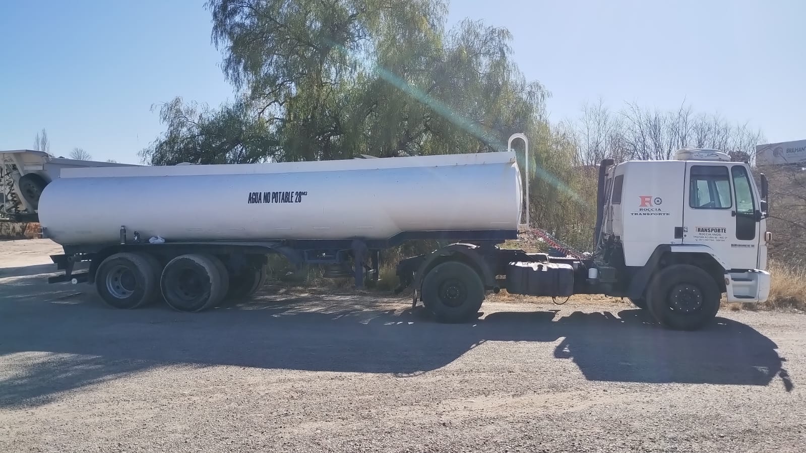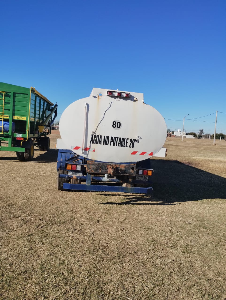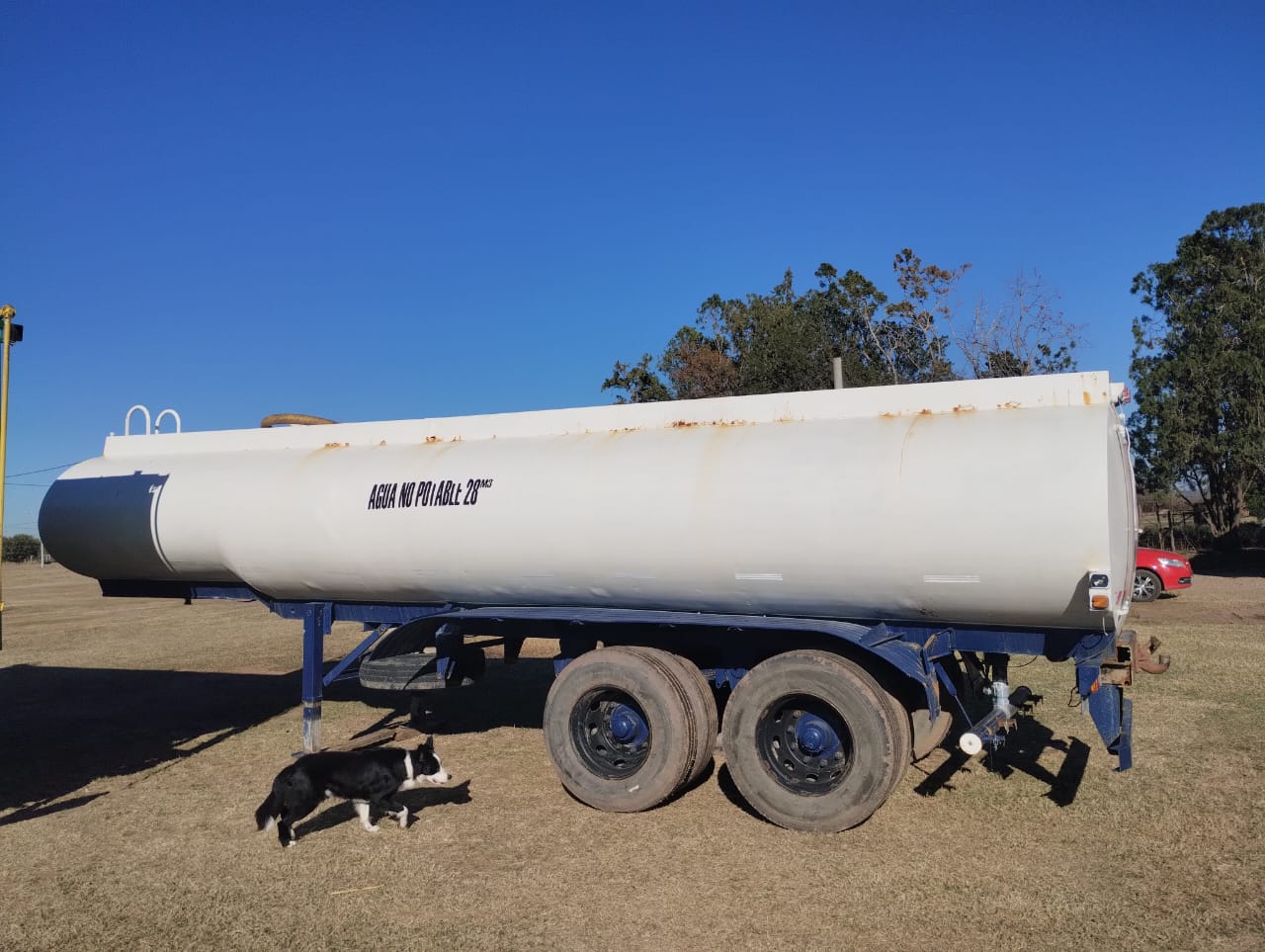 Cisterna, Regador (barra 2″), mod 74, 28k Lts, 3 ejes, 8.6mts largo, c/cubiertas (necesita reparación de fuga)